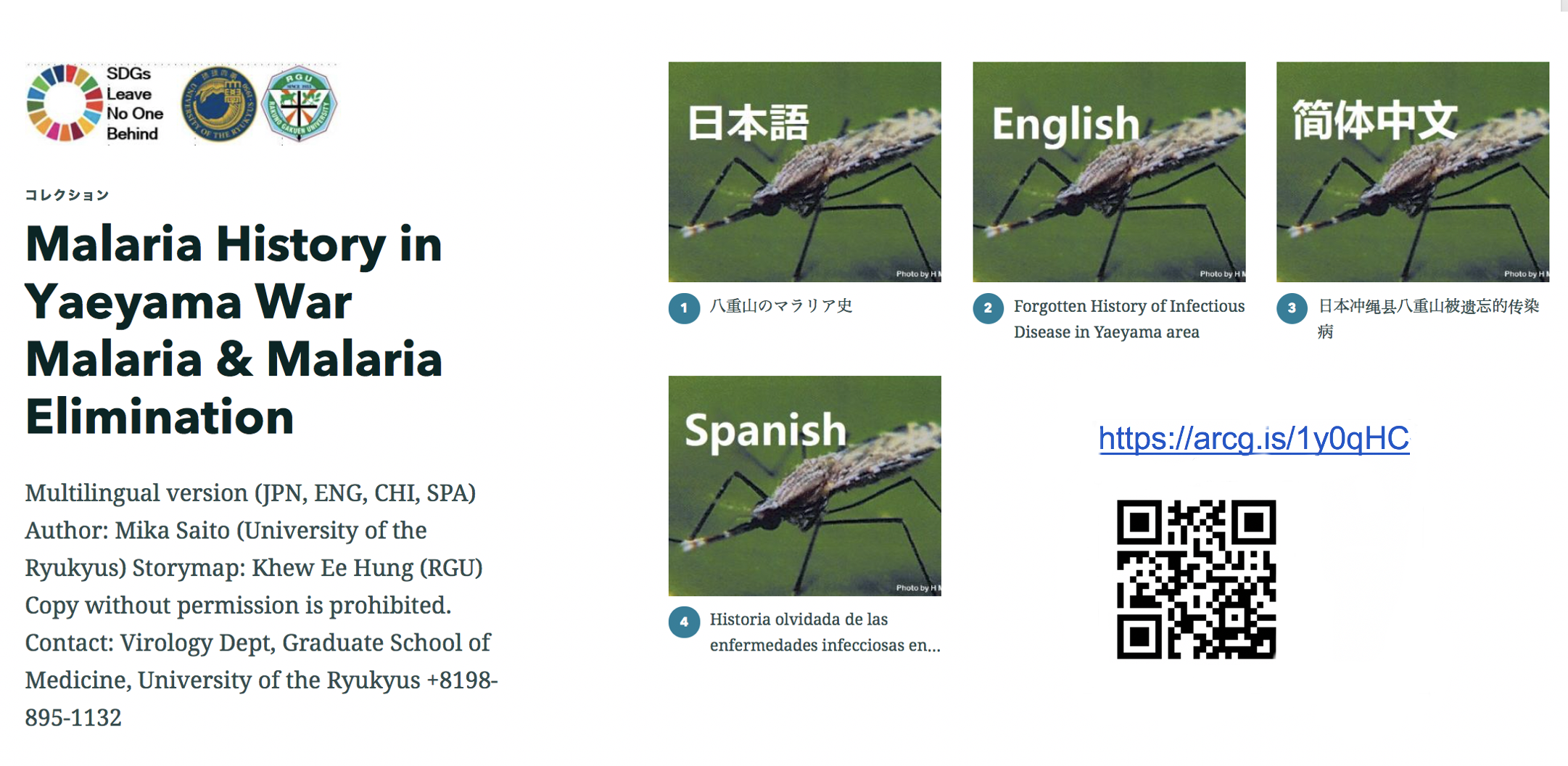 ■4カ国版デジタルサイト「八重山のマラリア史」の公開 (https://arcg.is/1y0qHC)