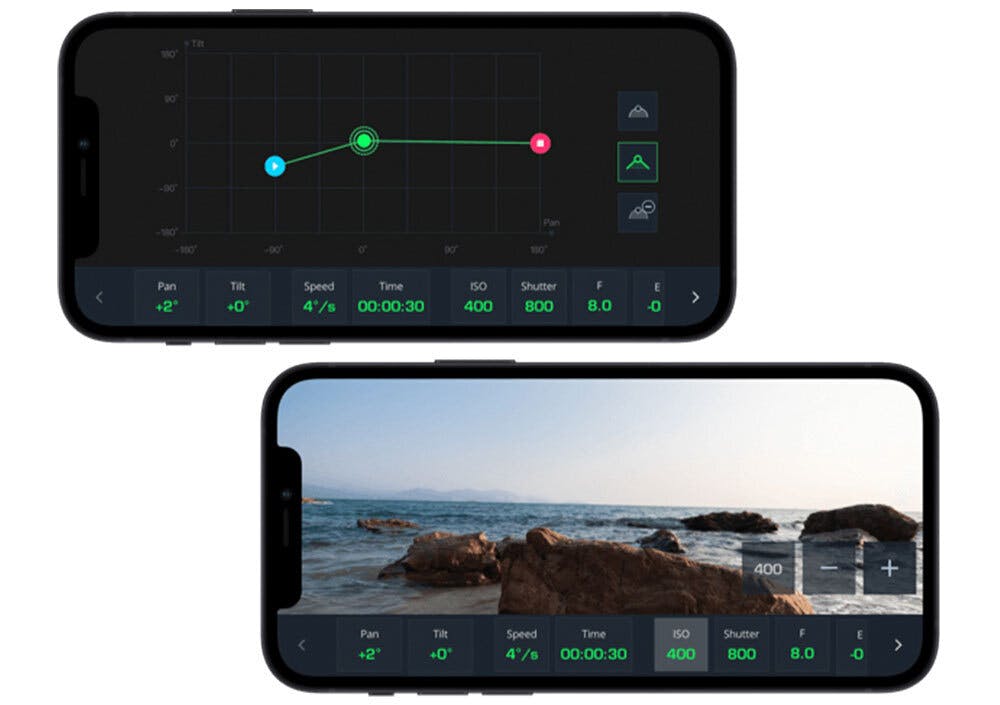アプリ内で、すばやく簡単に撮影を設定できるように取り組んでおり、調整が可能で使いやすい操作性を実現できました。この操作性でノードを制御することが出来ます。各制御ノードはカメラのパラメーター、各ショット間の間隔、カメラの正確な角度、またはヘッドの回転速度を個別に設定できます。ストレスなく設定することで、アイディアに制限を設けることがありません。