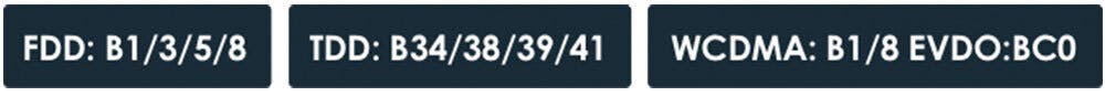 ポラリス携帯電波バージョンでサポートされている周波数帯域: