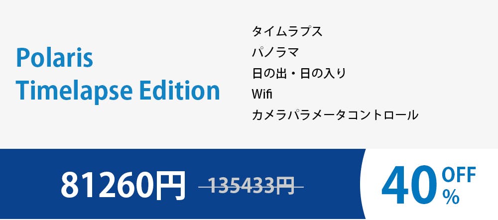 タイムラプス写真はビデオの中の最も目を引くショットの1つであり、物語を説明するのに非常に役立ちます。ポラリスはスマホアプリを使って、撮影の間隔、継続時間、露光を簡単に設定できるようにします。ポラリスはキャプチャ中でもタイムラプス設定を調整することが出来、タイムラプス写真を期待どおりに正確に出力することができます。