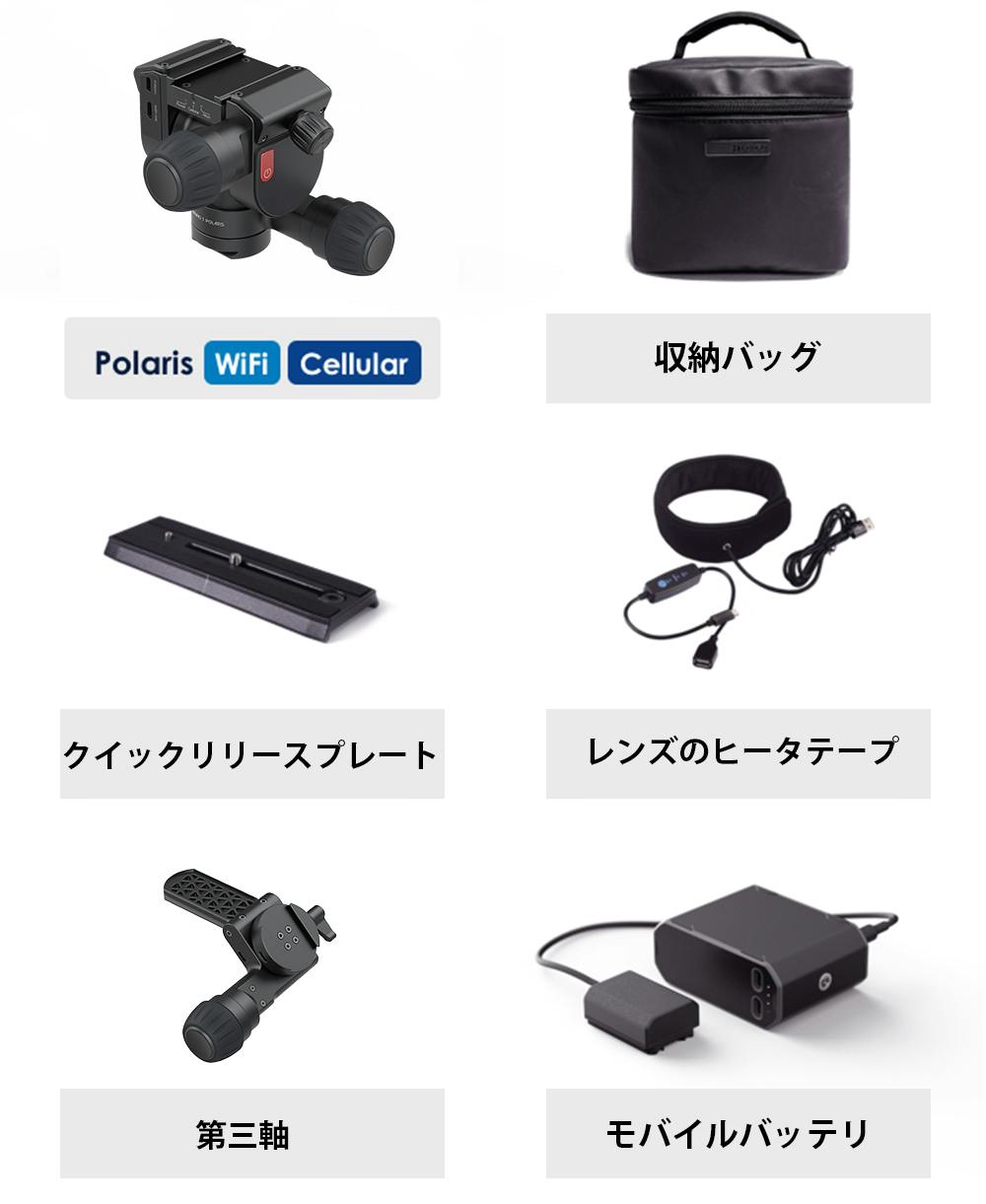 カメラや望遠レンズを温めることにより結露を防ぎます。全てのパッケージのいずれにも付属していないので、ご希望の方は合わせて購入をおすすめします。
