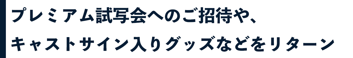試写会場への交通費や滞在費はリターンには含まれておりませんのでご注意ください。