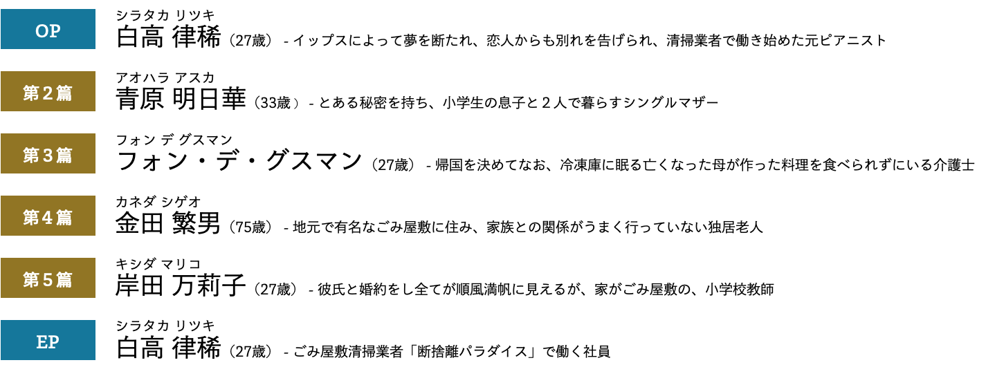 6篇のエピソードからなる新機軸の断捨離人情喜劇。