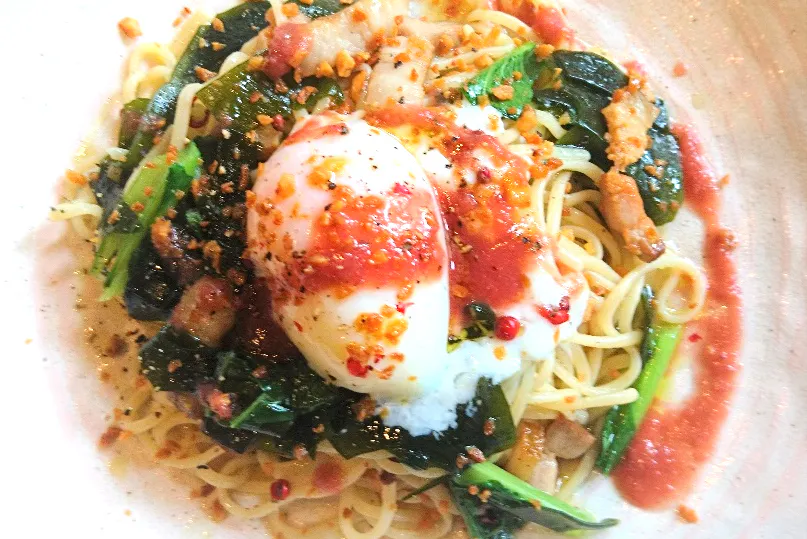 〈レシピ一例〉さかもとサルサのスパゲッティ「ぺぺたま」