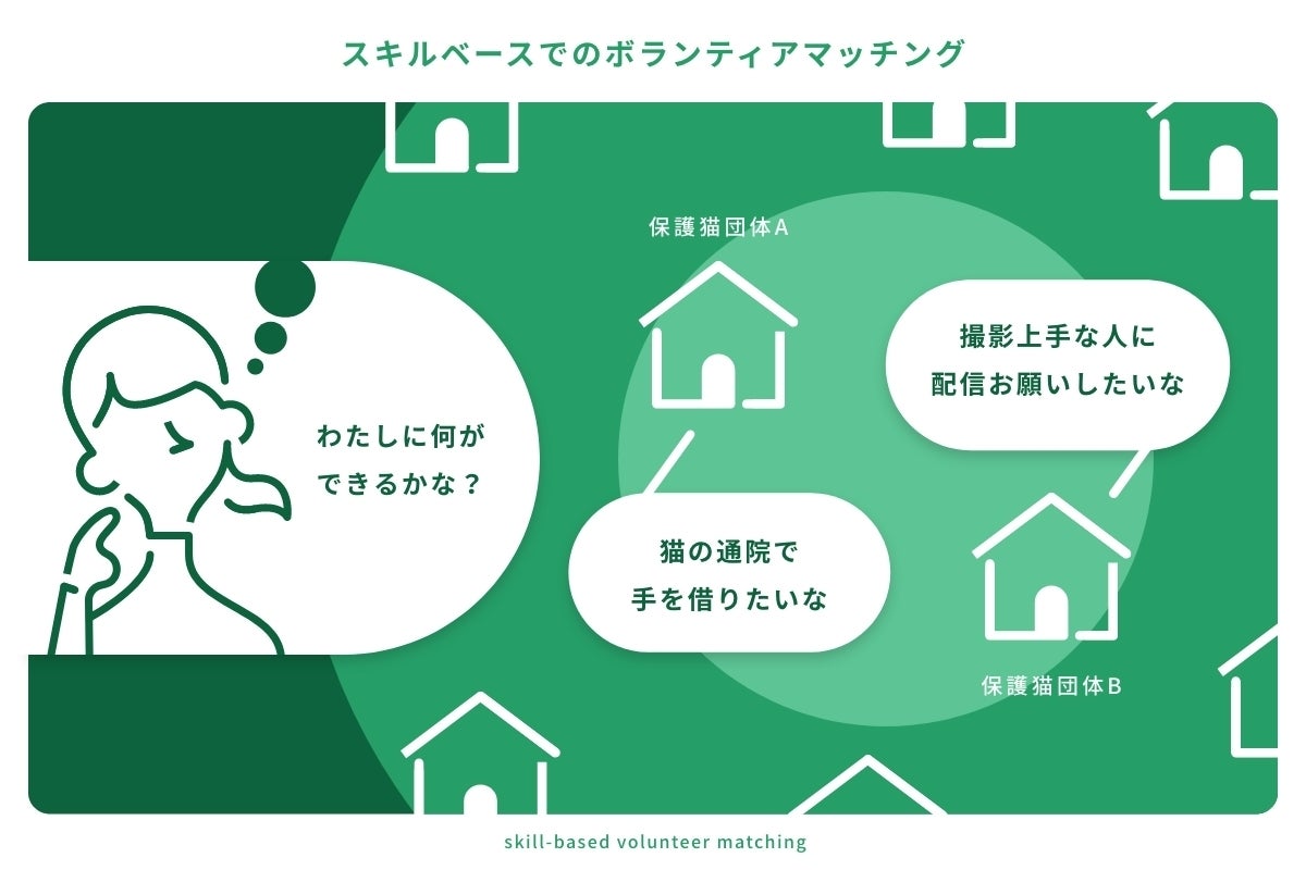 neco-noteでは、ボランティアの内容や必要なスキルを明確にしてから募集するので、必要な役割を的確に埋めていくことができます。 例えば、neco-note内で行うライブチャットの担当やSNS担当、猫の通院ドライバーなど専門性の高いボランティアだけを集められます。