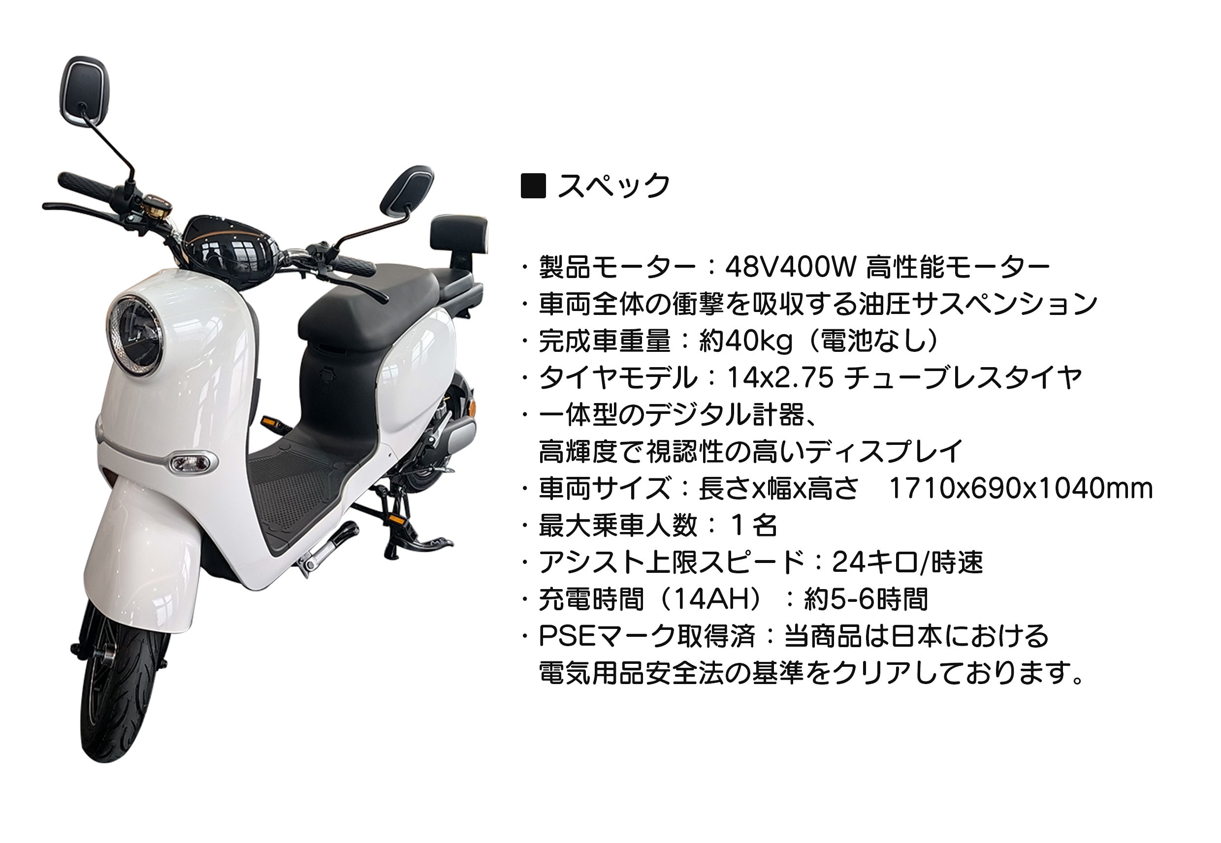 日常の移動のアシとして、電動アシスト自転車からステップアップしたい、という人向きの仕様になっています。