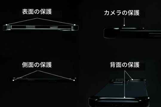 本体のあらゆる角度を保護しつつ、できるだけ本体を覆わないようにするため、角の部分とカメラを重点的に保護するデザインにしました。