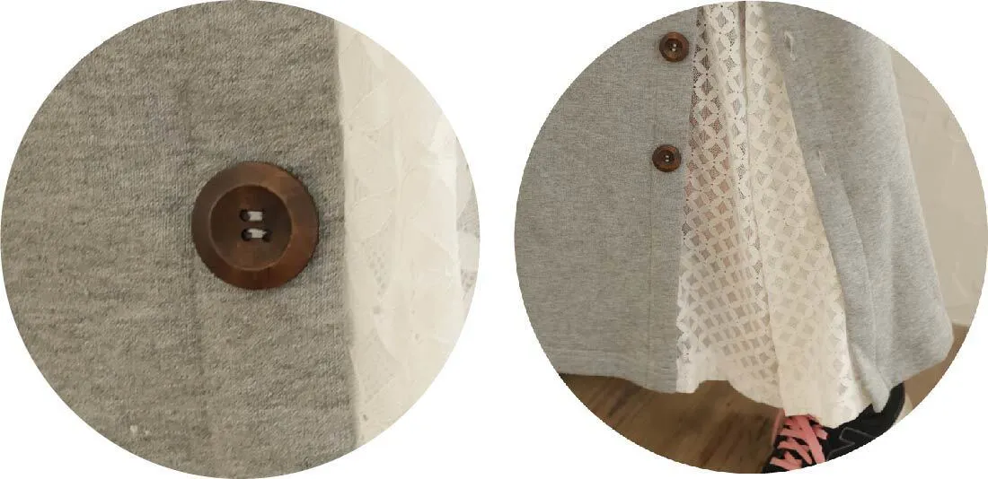 レースは和柄の「七宝」風です。レースは左右両方に入れております。また、ボタンは落ち着きのある木製で全体的に高級感がありアクセントととなります。