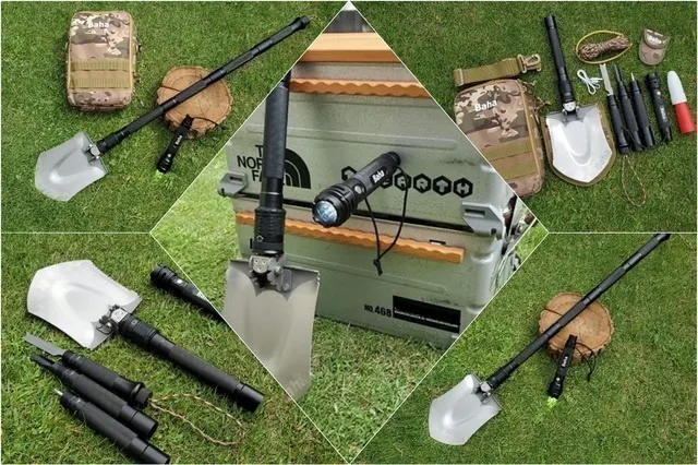 この23の機能を詰め込んだ1本のスコップが小さなバッグに収納されます。