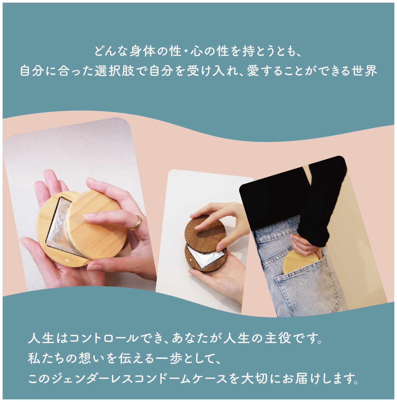 このジェンダーコンドームケースを通して人生や性の選択を広げることで、皆さんが人生の主役としてより自分らしく過ごせるようになることを願っています。