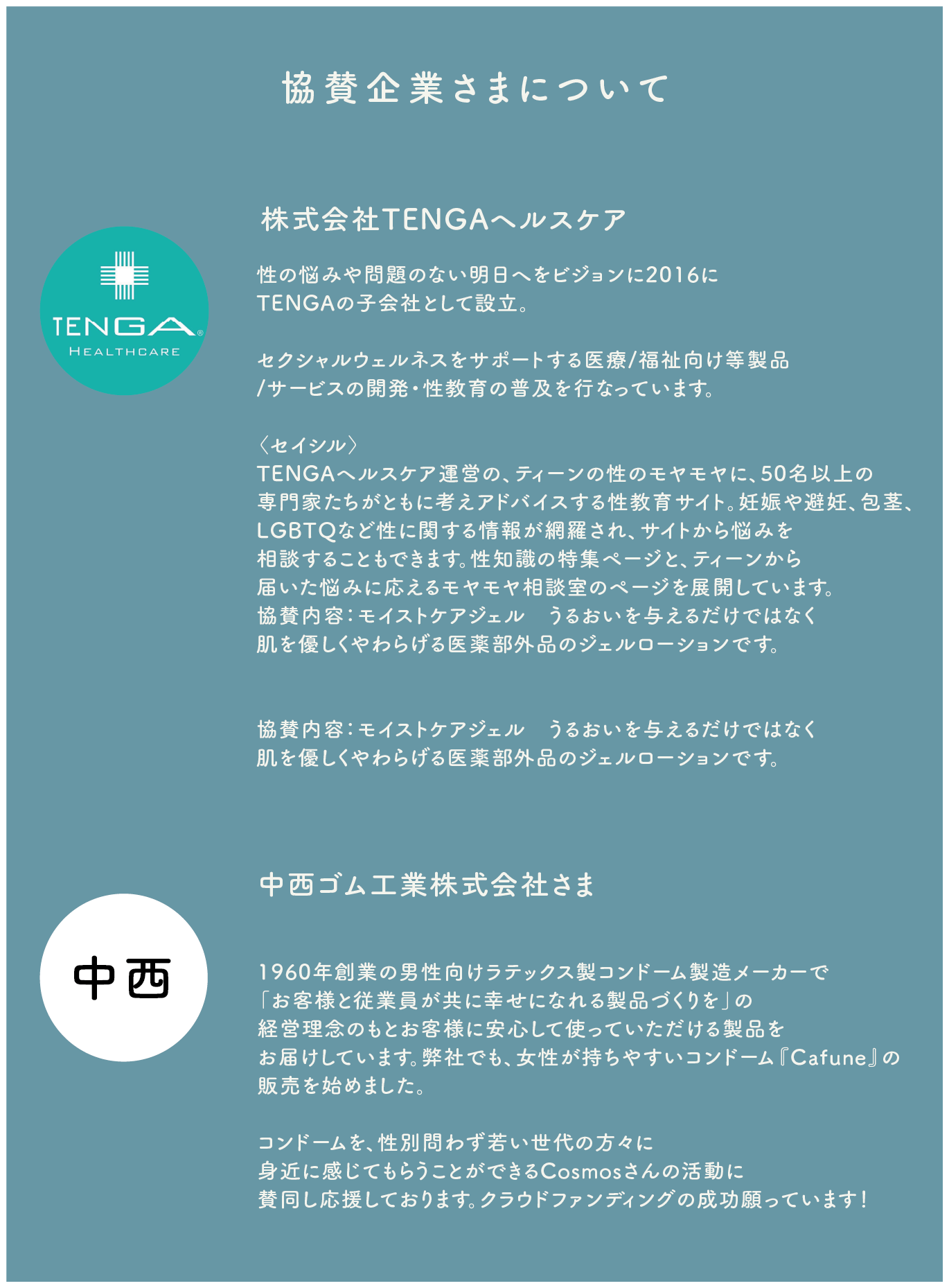 多くの方がこのケースを通して、自らの身体について考え、「ジェンダーを問わず自分の性の健康のためにコンドームをもつ文化」を築いていくことで、自分の人生を自分でコントロール出来るようにするきっかけになれば嬉しいです。
