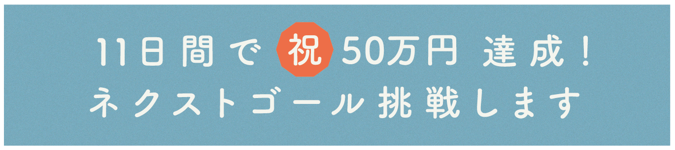 なんと開始から11日で50万円を達成することが出来ました!皆さまのご支援のおかげです。