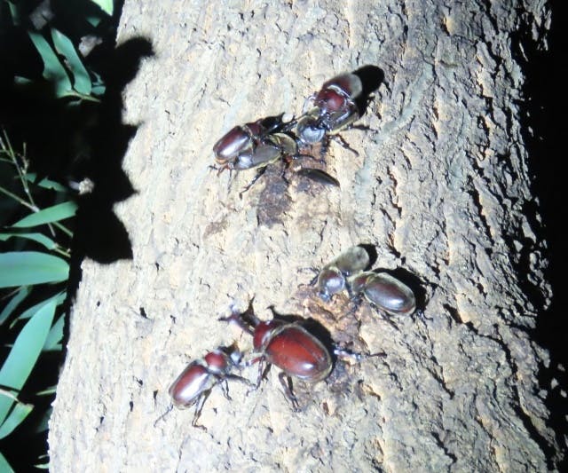 虫採りに行って来ました!すごく明るいので、茂みに入らなくても広い範囲を探せます。揺らして落ちてきたカブトムシもすぐに見つけられました。