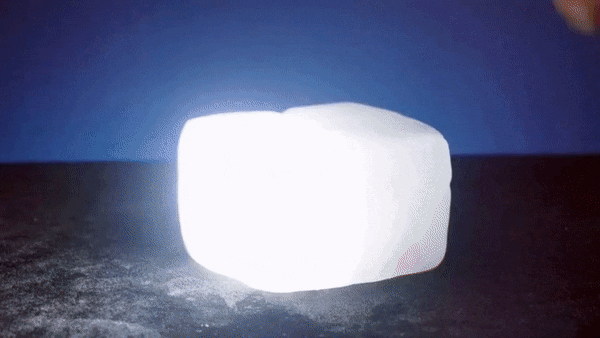 点灯しているライトの上から、素焼きのプレートを落下させてみました。