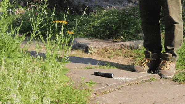 夜間の街灯がない道で点灯。しっかりと足元を確認できる明るさです。驚くほど遠くまでクリアに見通せるので少し暗い場所でも不安なく歩けます。夜道を歩く際には自分の足元を照らすことも大事ですが、明るいライトを持つことで周辺の車や自転車に早めに気がついてもらえるといった効果もあります。
