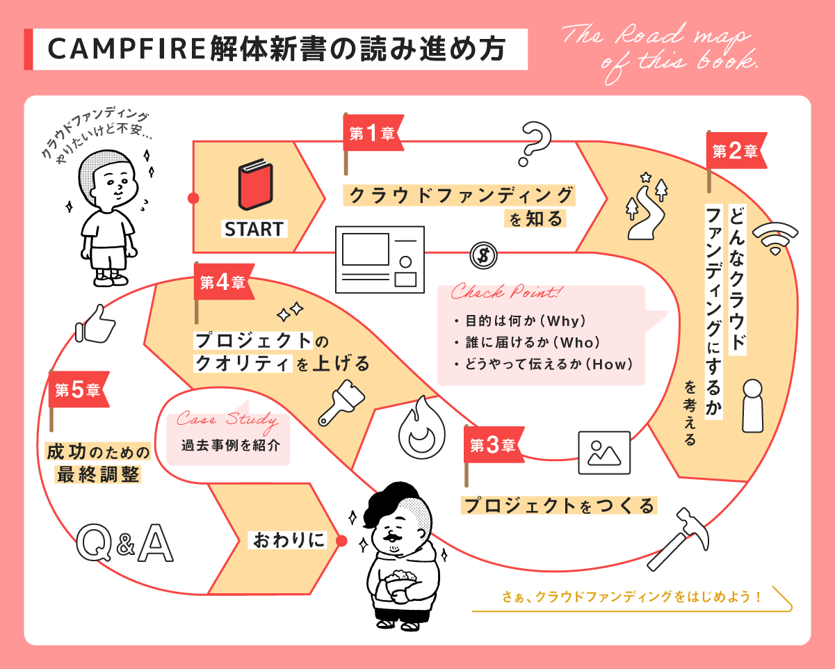 これからCAMPFIREでのプロジェクト起案を検討されている方に向けた参考書としてお届けするためのものです。
