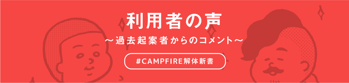 今回、CAMPFIRE解体新書の出版にあたり、過去にぼくがパートナーとして起案をサポートしたプロジェクトオーナーさんにコメントを頂きました。