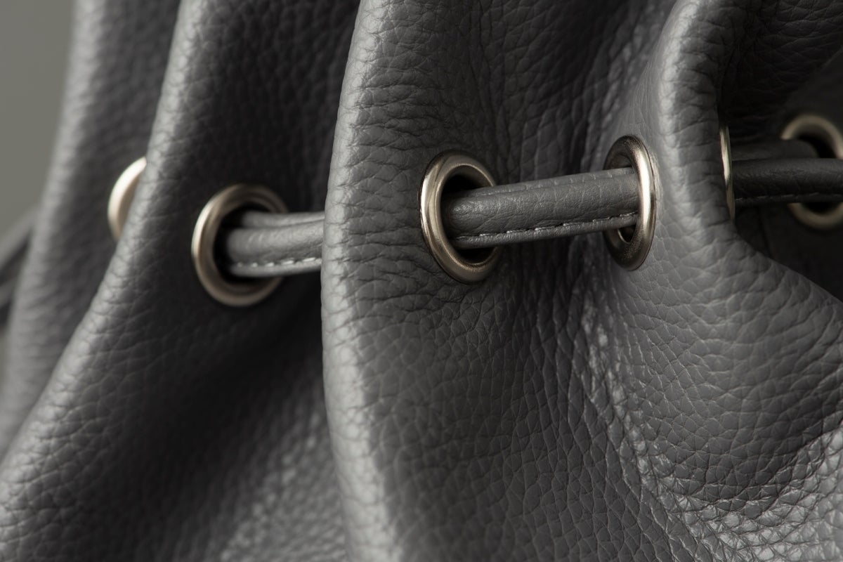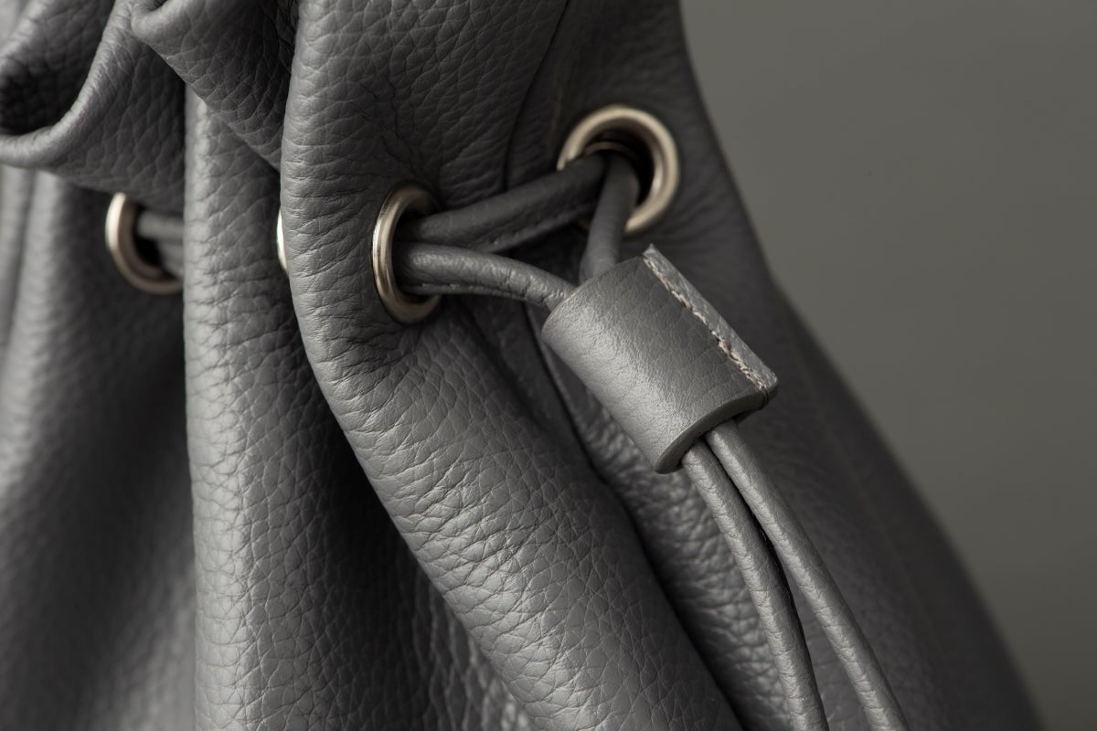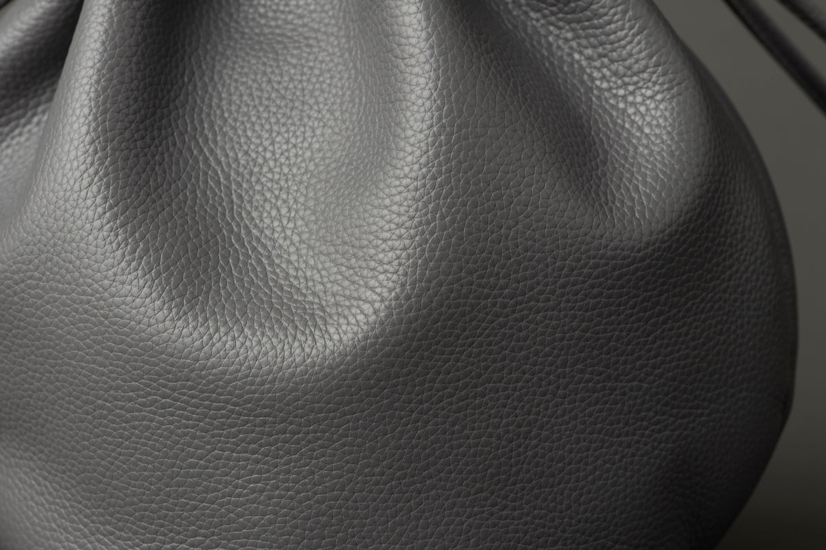 素材には、均一なシボが特徴の牛革を採用。傷つきにくく、多少の傷がついても目立たない。また、するんと滑らかな表面なので、多少汚れても簡単に拭き取りが可能。そんな素材です。また、しっかりとした厚みとハリ・コシも特徴で、それが美しいドレープの所以でもあります。