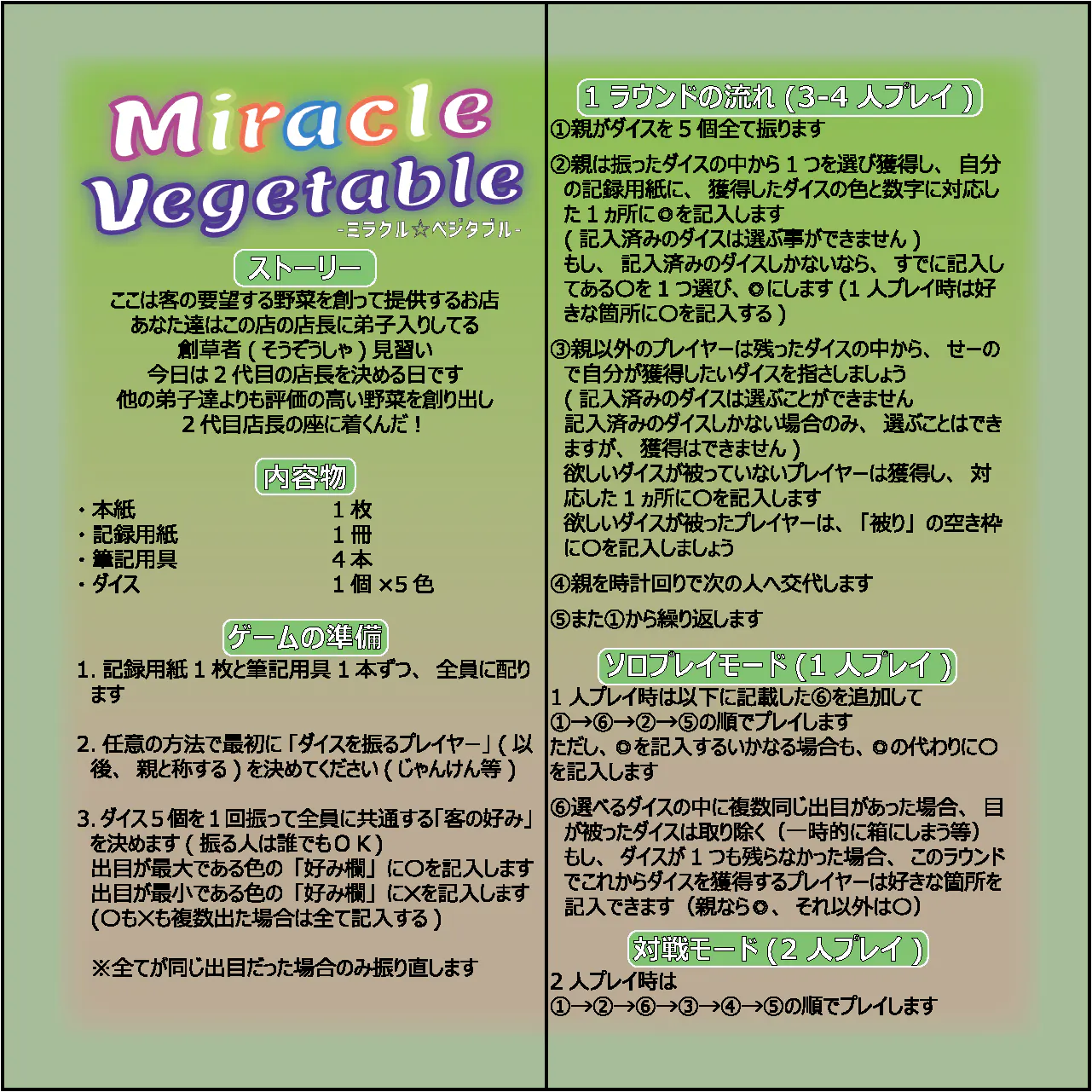 ミラクルベジタブルのルール
