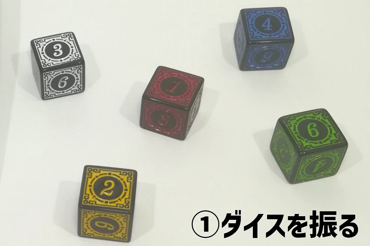 ①5色のダイスを振る