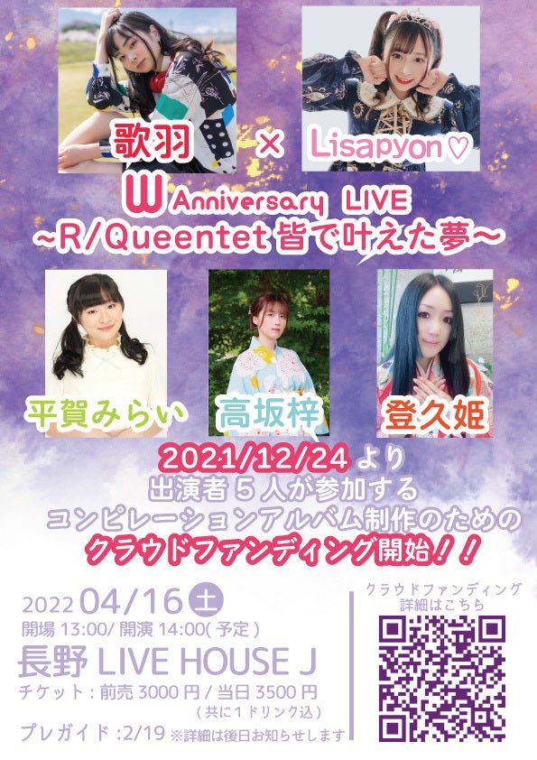 「歌羽×Lisapyon♡W Anniversary LIVE〜R/Queentet皆で叶えた夢〜」のライブチケットをご用意。
