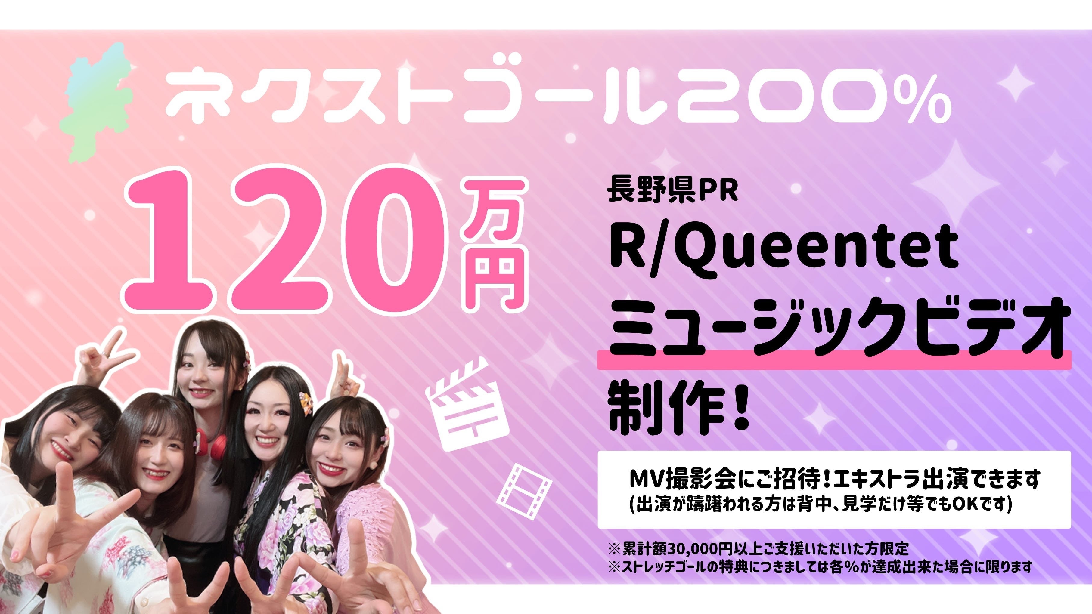 ・累計30,000円以上ご支援頂いた方をMV撮影会にご招待致します。