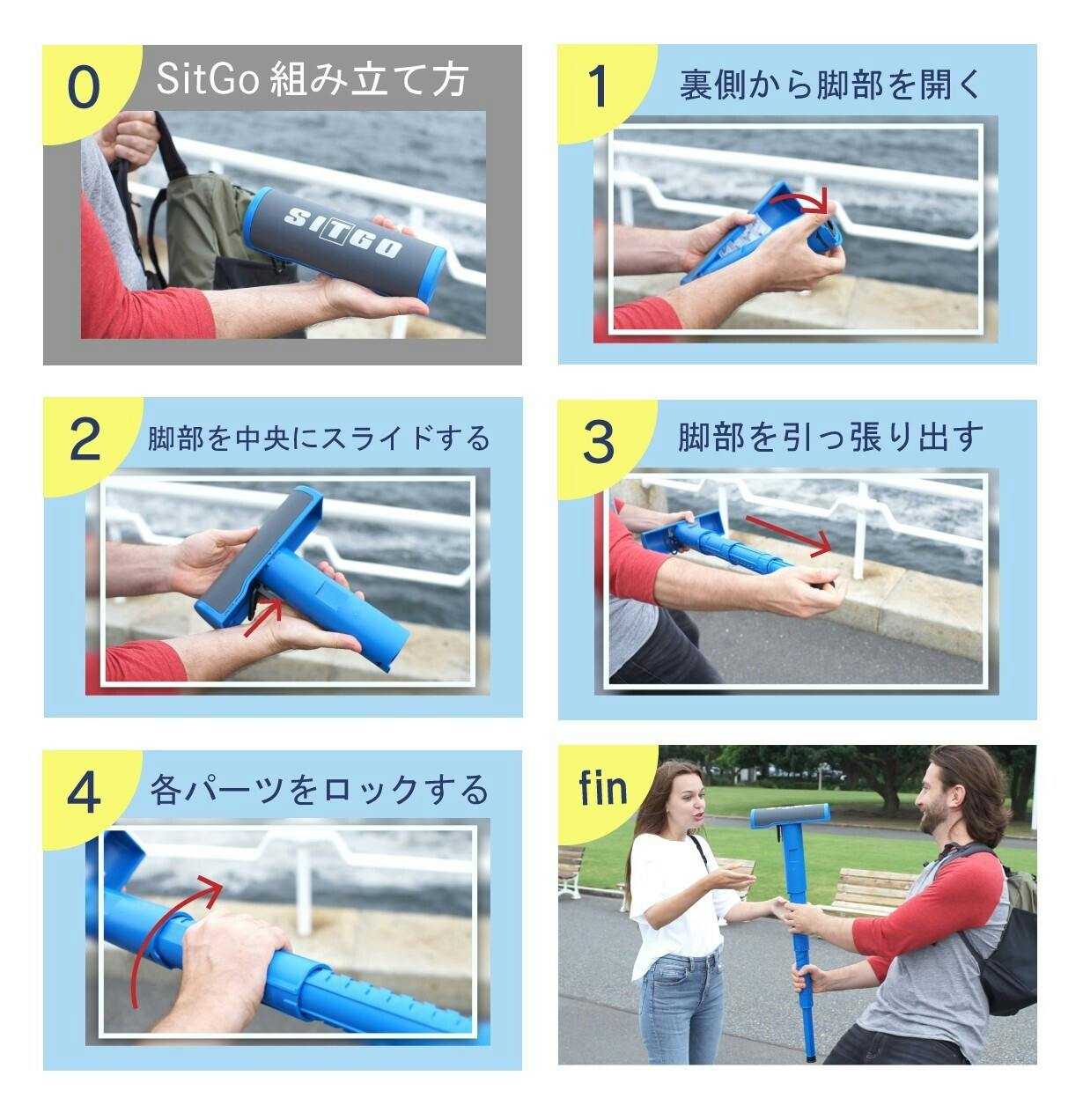 SitGoは椅子やベンチがなくても、いつでもどこでも体を休めることができる多目的モバイルチェアです。