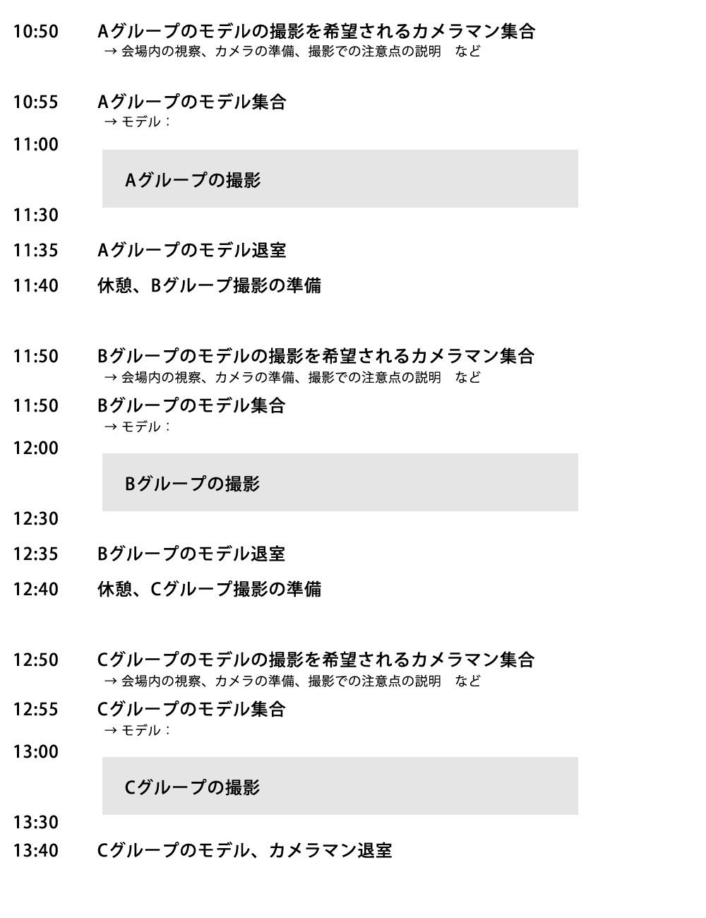 ※ 撮影は11時~、12時~、13時~の3部制です。