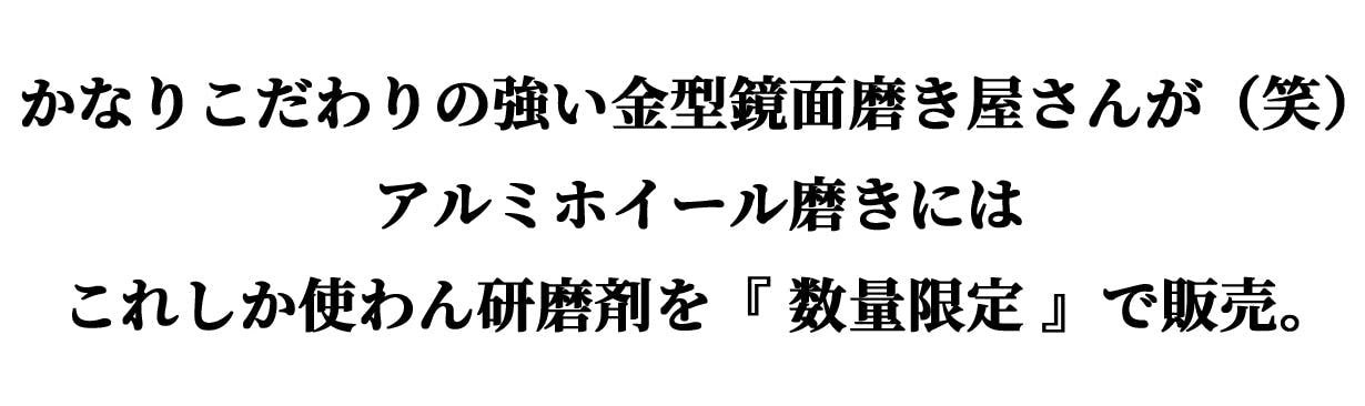 そんなこだわりの強い株式会社橋本工業が、今回おすすめする研磨材は、通常販売はしておらず、磨き課で使用しているものだったのですが、アルミホイールの磨き動画をアップ後、多くのお客様に、お問い合わせを頂き、数量限定のご用意となりましたが、販売する機会を頂く事となりました。