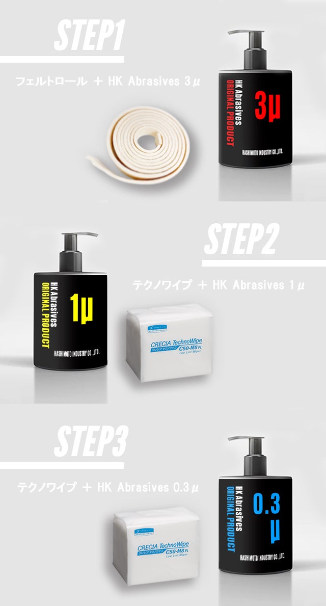 こだわりが強すぎて、満足いくものが見つからず、メーカー様ご協力のもと、何度も改良を重ね、オリジナル研磨材まで作成。