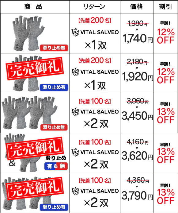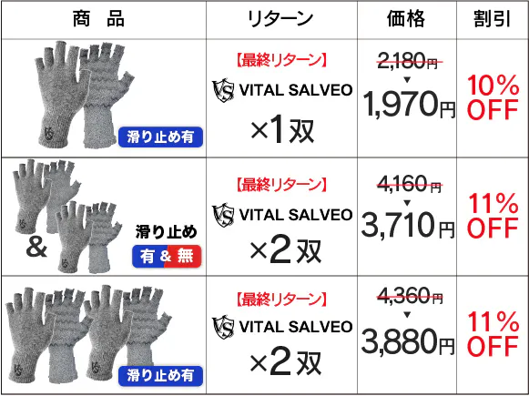 Q. VITAL SALVEOの指も全て覆っている手袋はありませんか?