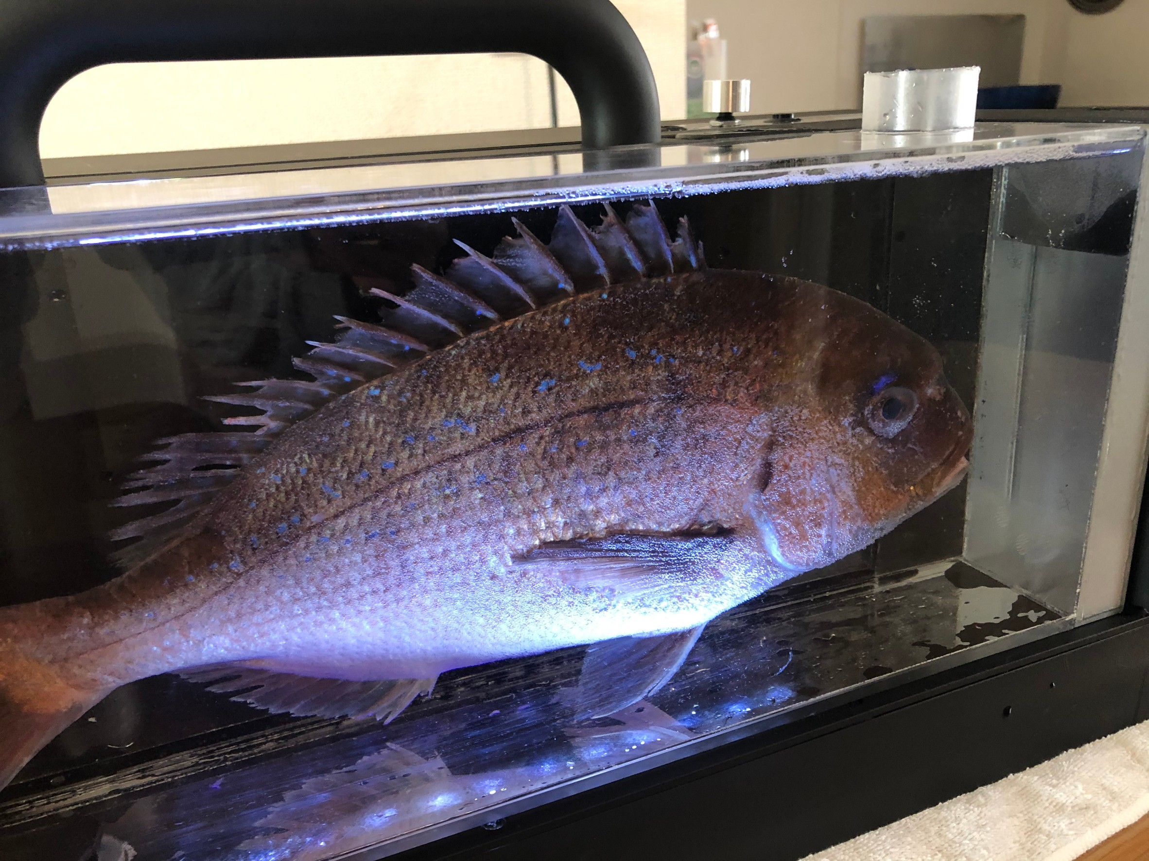 A:真鯛で48時間生かすことに成功しております。収容する魚種や状態にもよりますが、 今後も検証を重ね、魚種や尾数、サイズごとのデータをinstagram等で発信してまいります。