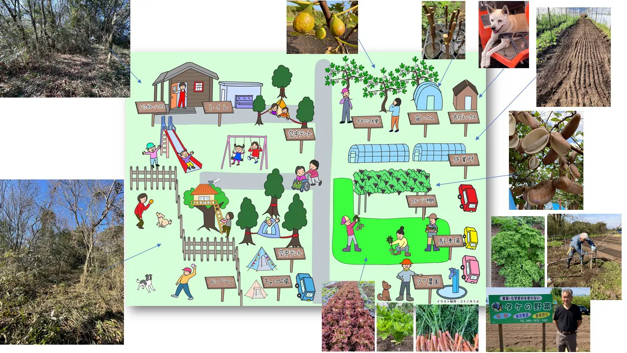 ネイチャーランドは、現在「タケの野菜」の農場に隣接する形で開設します。