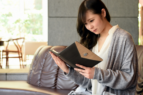 また、ELENOA(エレノア)に付属しているUSBメモリーは普段留め具として利用していますので、常に⼿元にあることが確認でき、無くしてしまう可能性を減らすことができるデザインになっています。