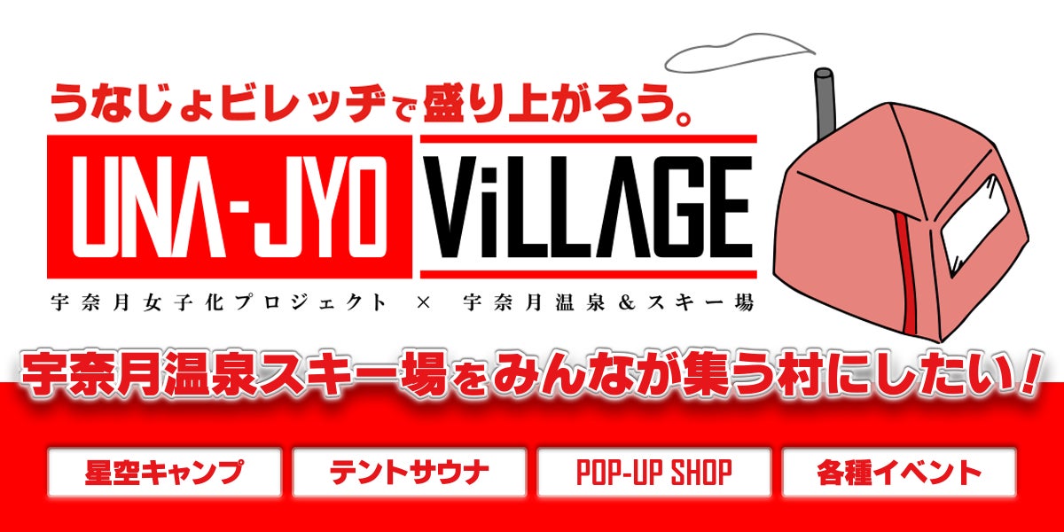 今シーズンは、さらに継続して安定したスキー場への来場者を増やすために、さまざまなイベントを実施したいと計画しています。今回立ち上げたこのプロジェクトでは、冒頭に申し上げました、今シーズンの宇奈月温泉スキー場を盛り上げるテーマである「冬キャンプ」に基づき、このスキー場を冬限定のキャンプ村「UNA-JYO ViLLAGE(うなじょビレッヂ)」で提供するサービスや各種イベント開催により、スキー場存続に課せられた、今シーズンの来場者数ノルマの達成を目指します!