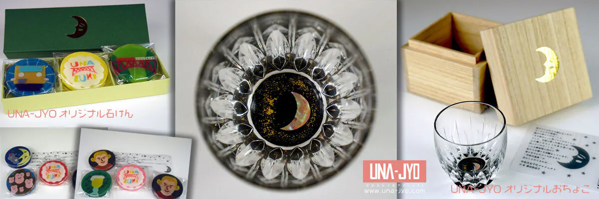 ⑪ UNA-JYOグラス + 宇奈月温泉お土産詰め合わせ 5,000円相当 ※UNA-JYOステッカー1枚付き