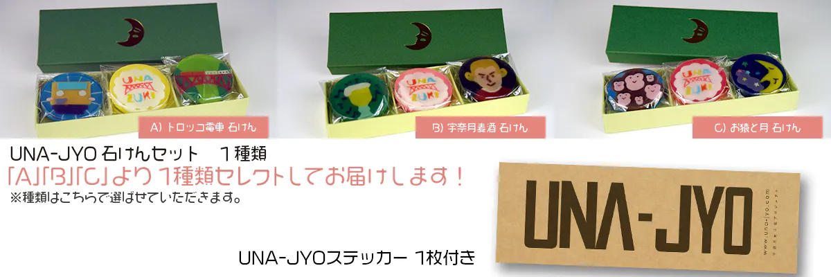 ⑦ UNA-JYO石けんセット ※UNA-JYOステッカー1枚付き