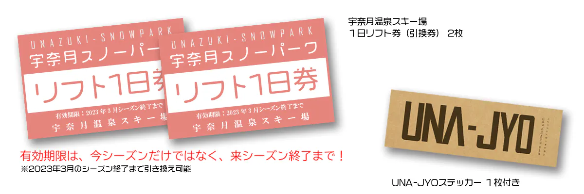 ⑧ 宇奈月温泉スキー場1日リフト券(引換券) 2枚 ※UNA-JYOステッカー1枚付き