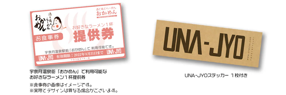③ UNA-JYOステッカー + 中島スキーセンター内食事券 500円