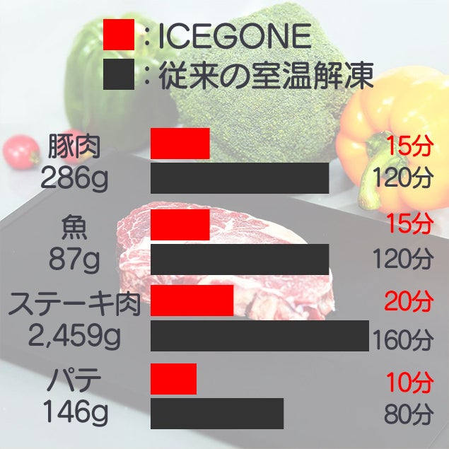 - 【急速解凍】ICEGONEは電気を使わず、凍った食材を自然解凍の最大8倍早く解凍します。