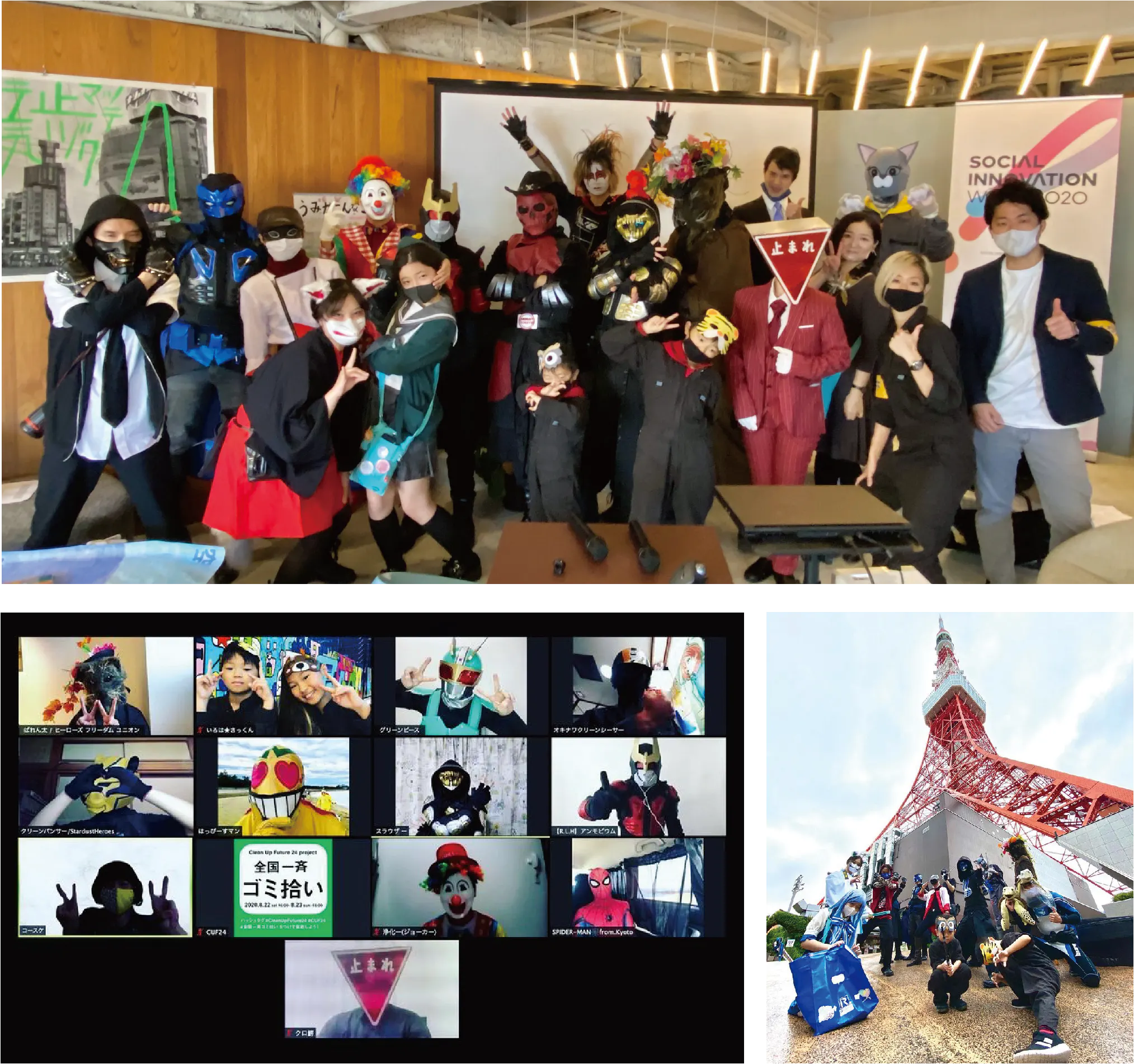 一年中、自分で考えたヒーローの仮装をして各地の清掃活動をする社会貢献型ヒーローです。