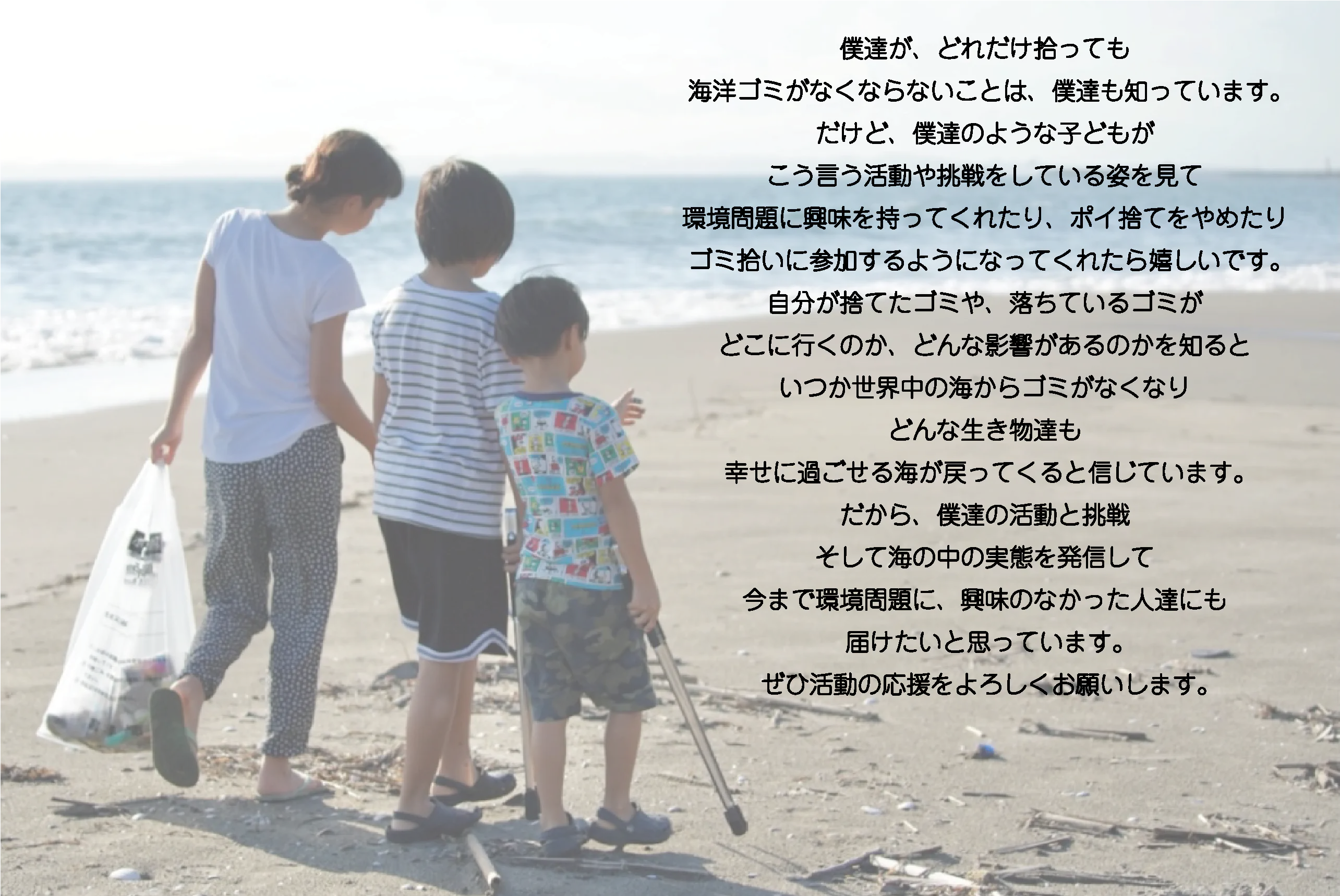 そこで僕たちは、ずっと夢だった「子ども達のゴミ拾いチーム」を作ることにしました。