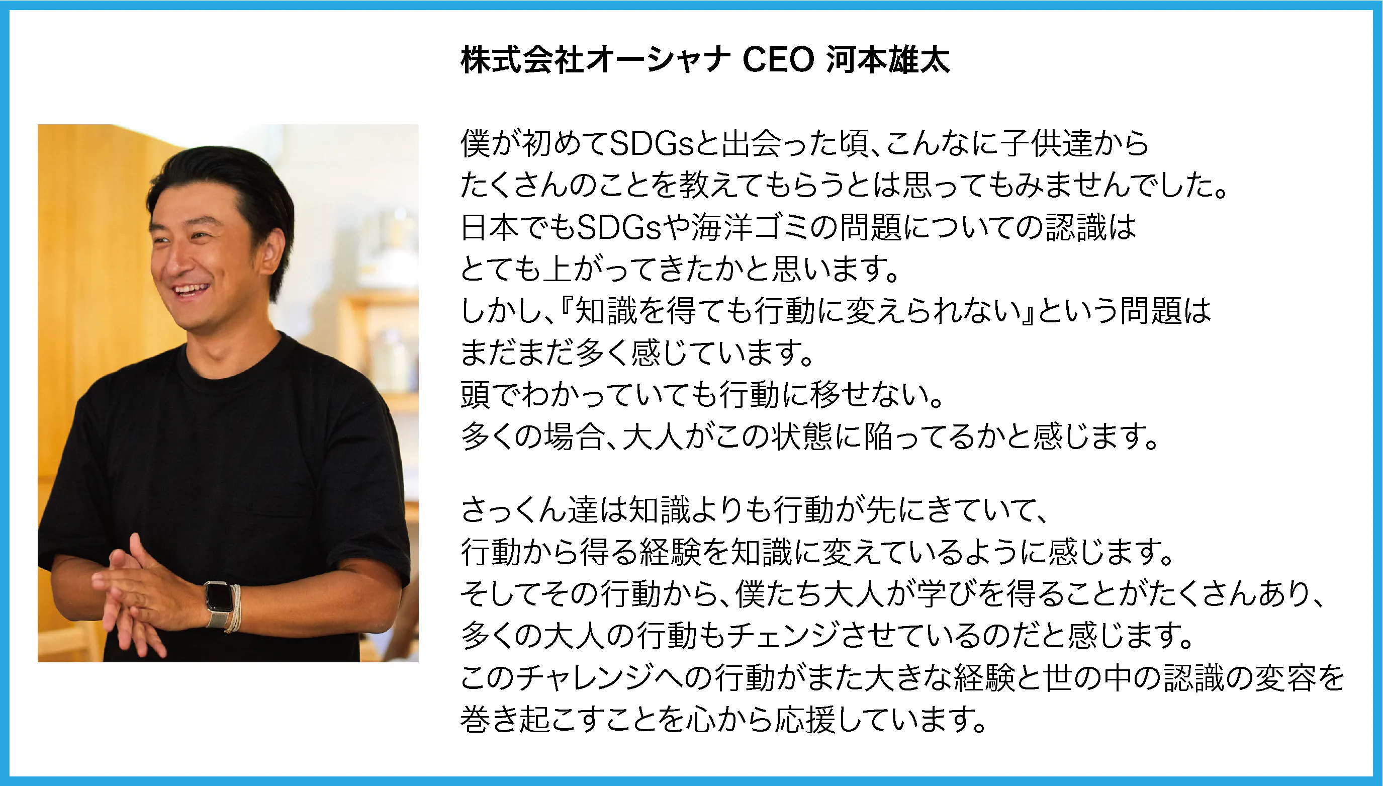 初めての環境問題へのアクションがこのプロジェクトの支援になってくれたら嬉しいです。