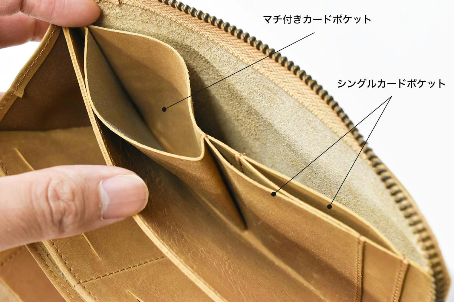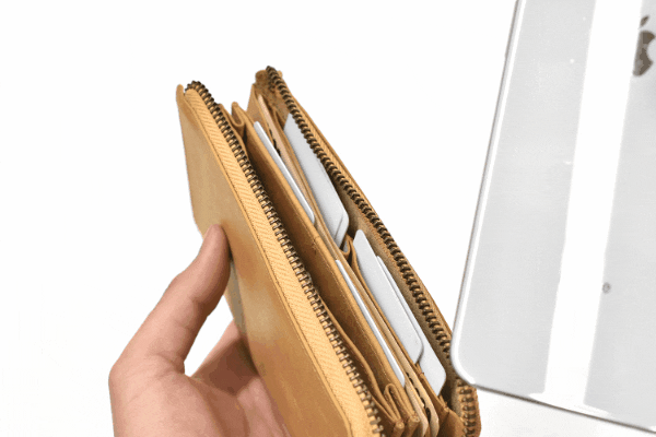 紙幣が20枚、コイン20枚、カードが15枚と既存の長財布の容量は十分にカバー。