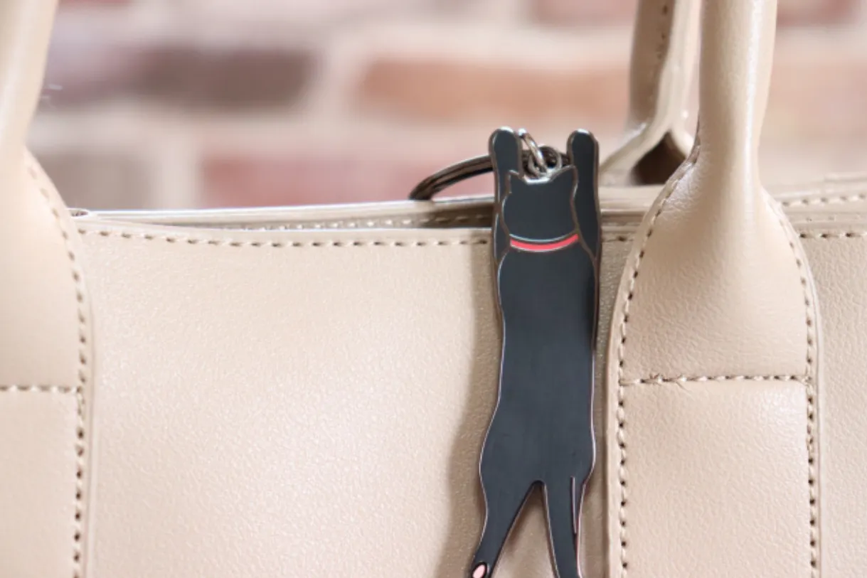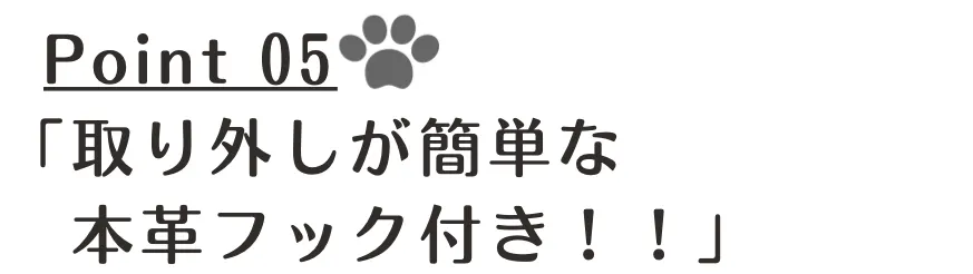 取り外しがしやすい本革フックにネコちゃんをぶら下げて一緒にお出かけください。