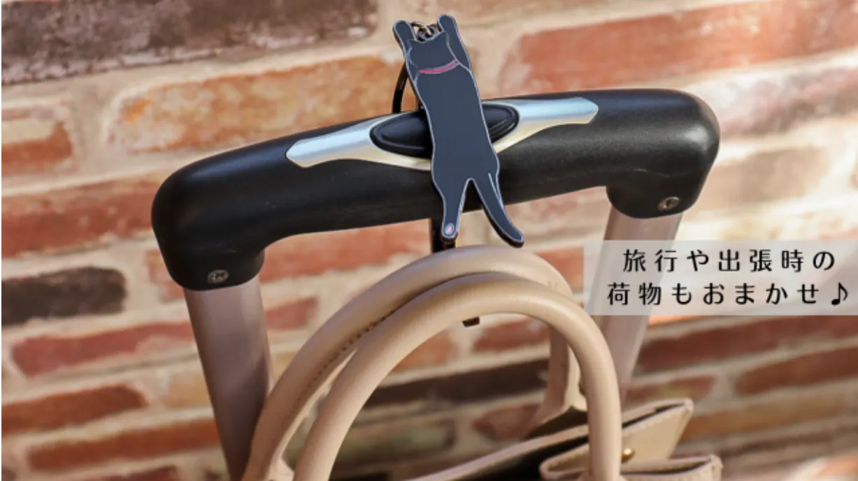 スーツケースのハンドルに寝そべれば、ハンドバッグやエコバッグを引っ掛けてくれます。