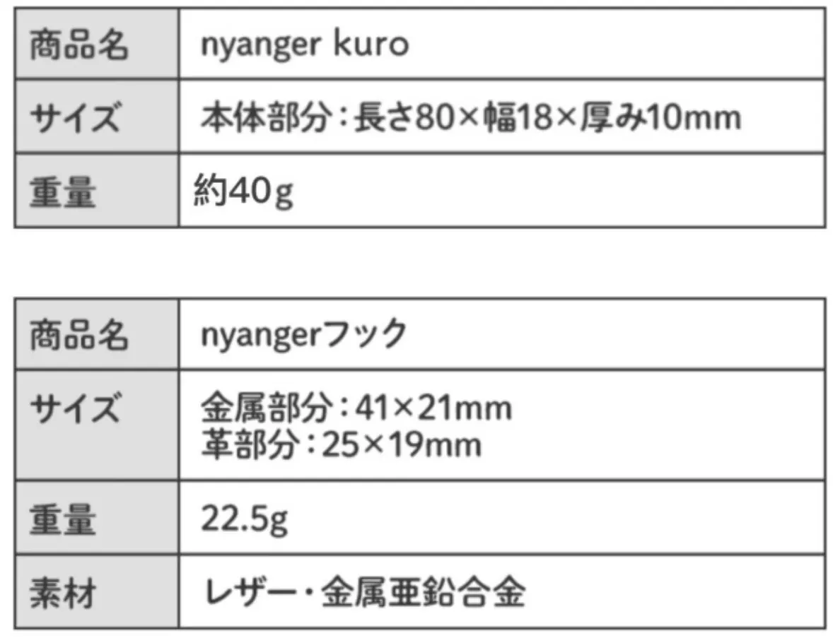 ※nyangerフックはnyanger kuroについているリングを取って付け替えてください。