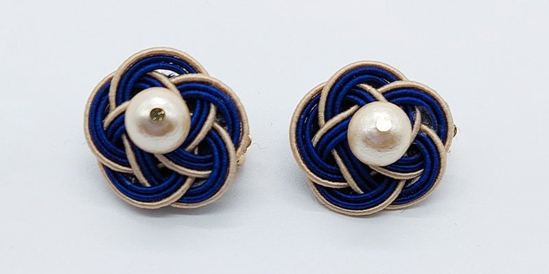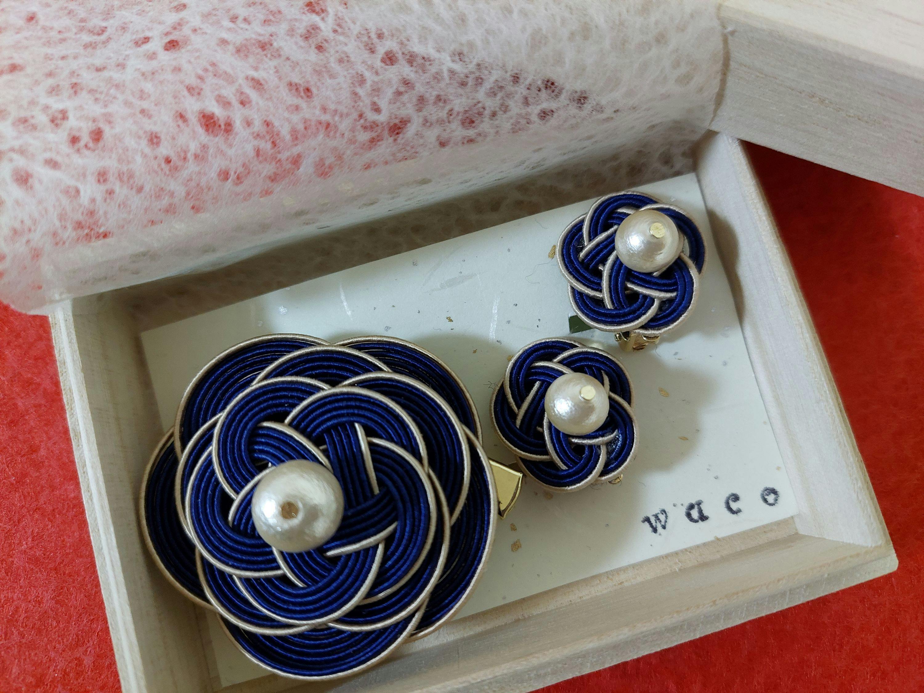 シックで高級感のある紺のブローチ・イアリングセットは、卒業式などの厳かなシーンにも映えるアクセサリーです。