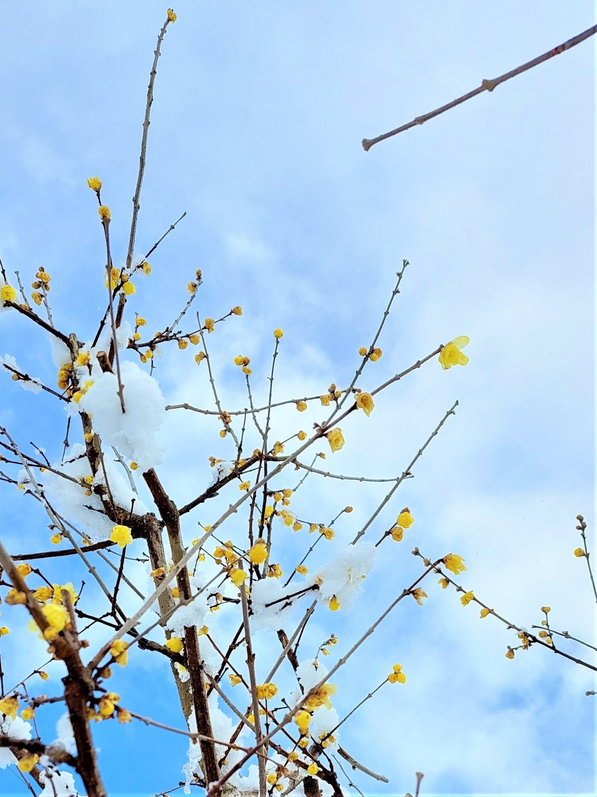 親が子をいつくしむような深い愛情を意味する、と記されています。花がまだ咲かない寒い冬に心にやさしく寄り添ってくれるような蝋梅(ロウバイ) の甘いよい香り 。