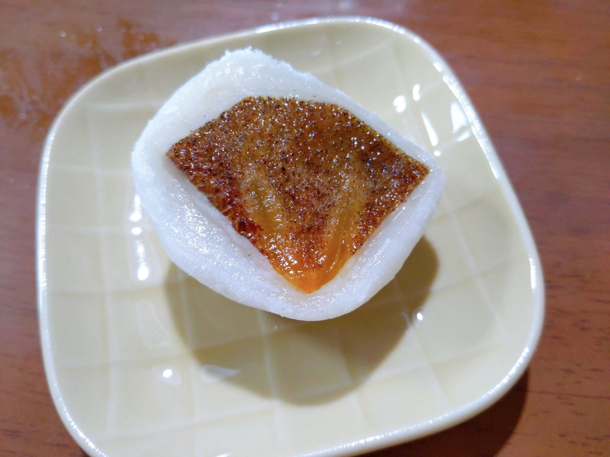 カットするのと果肉が黒い「紀の川柿」と言う濃厚な甘さの柿を使ったフルーツ大福もとってもおいしかったです。